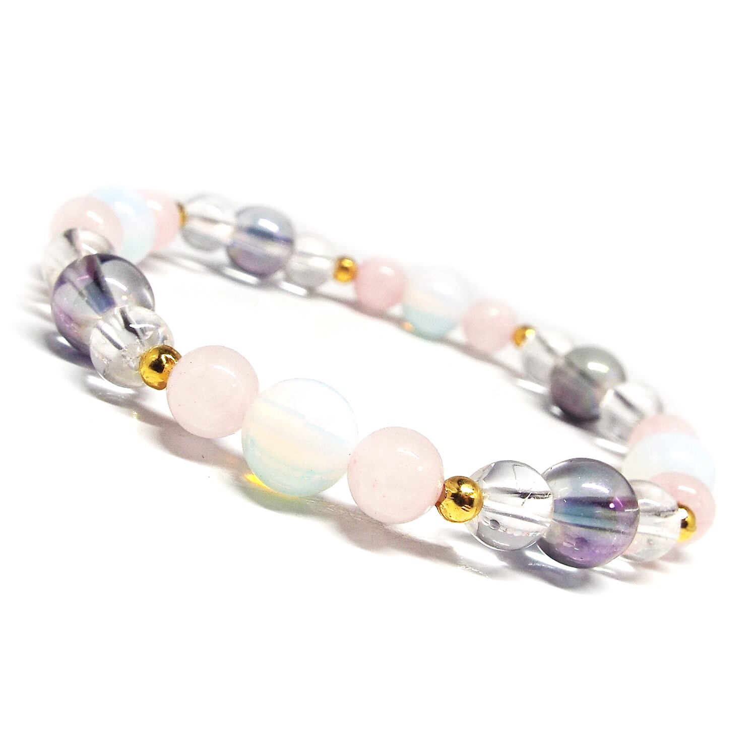 天然石 パワーストーン ブレスレット ローズクォーツ オパール オーラ水晶 D4-46