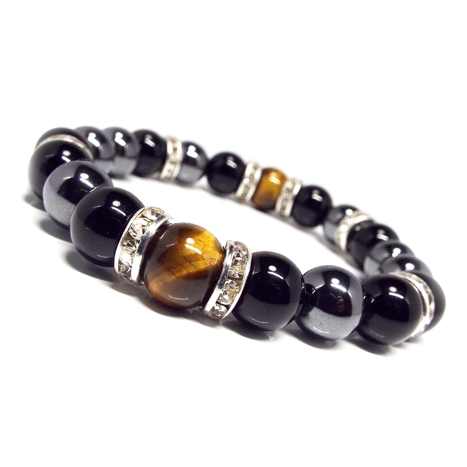 天然石 パワーストーン ブレスレット タイガーアイ ヘマタイト オニキス D4-73