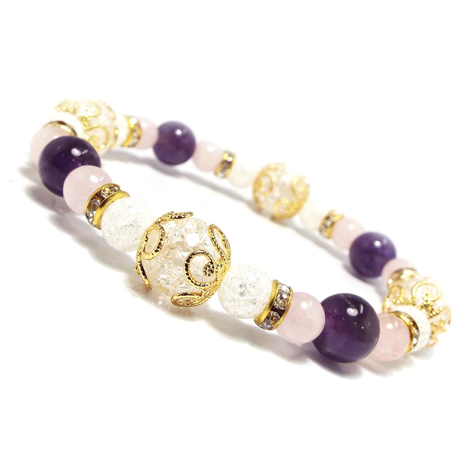 天然石 パワーストーン ブレスレット クラック水晶 アメジスト ローズクォーツ D4-78