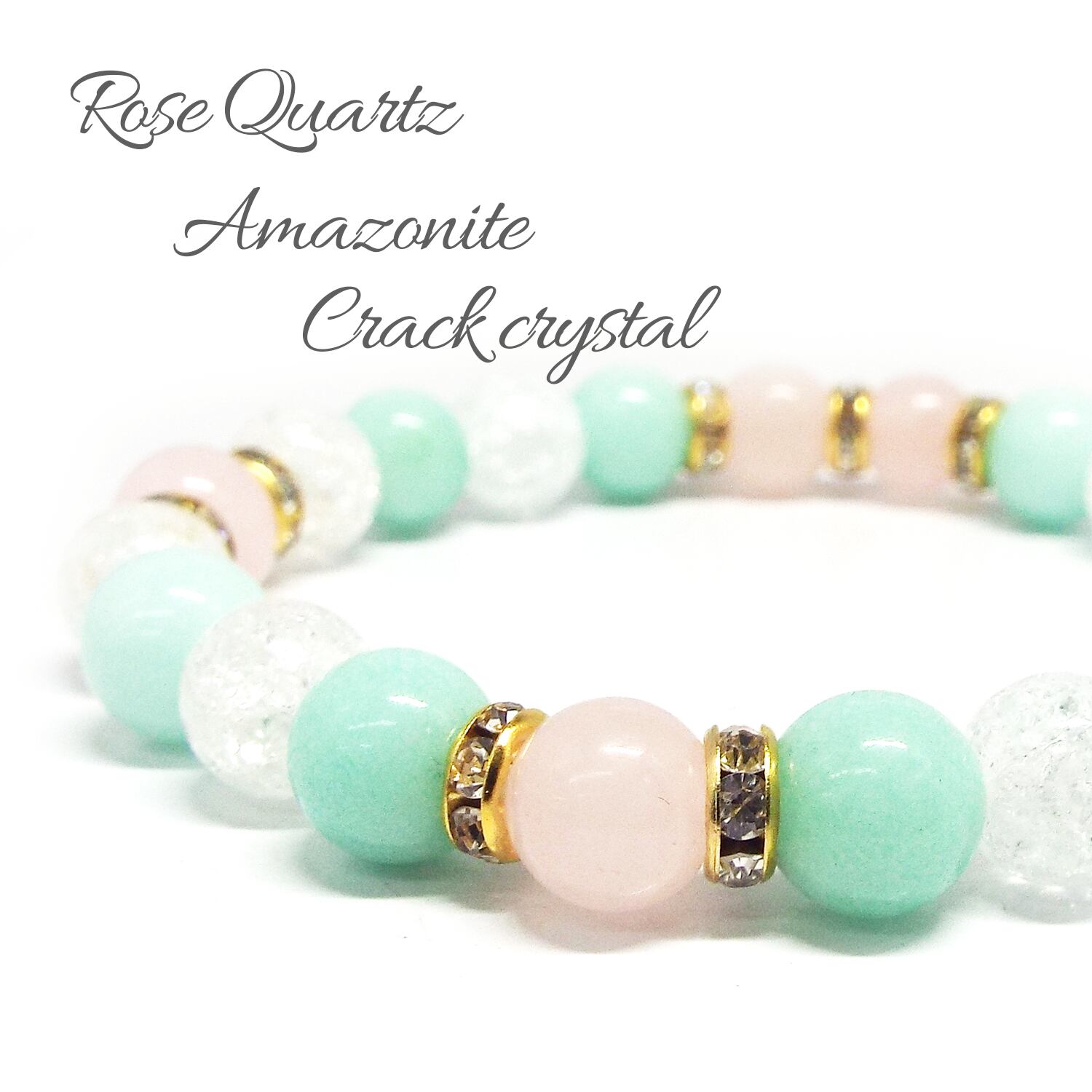 ローズクォーツ×アマゾナイトとクラック水晶の爽やかブレスレットは