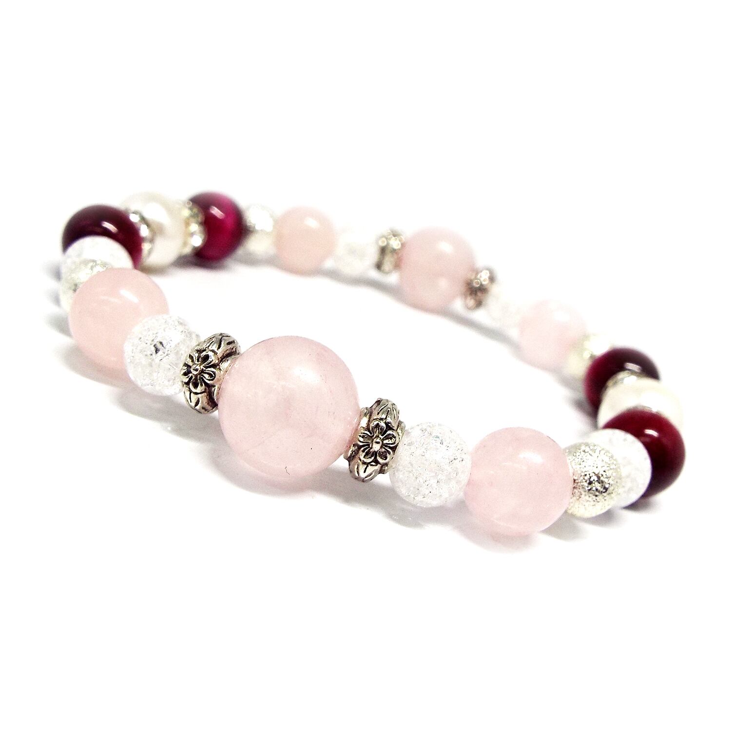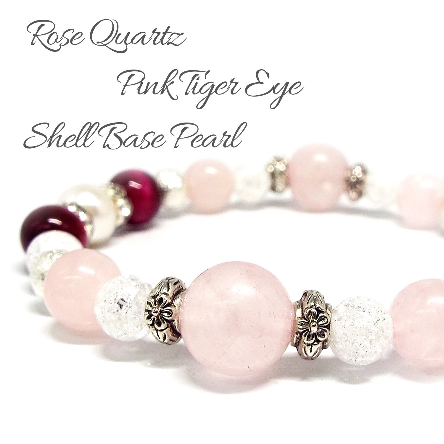 天然石 パワーストーン ブレスレット ローズクォーツ ピンクタイガーアイ D4-94