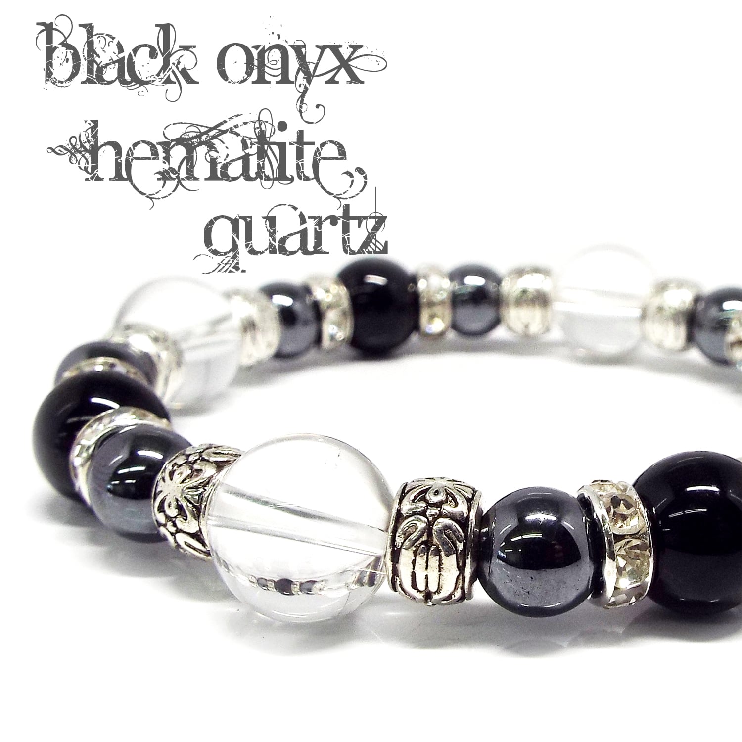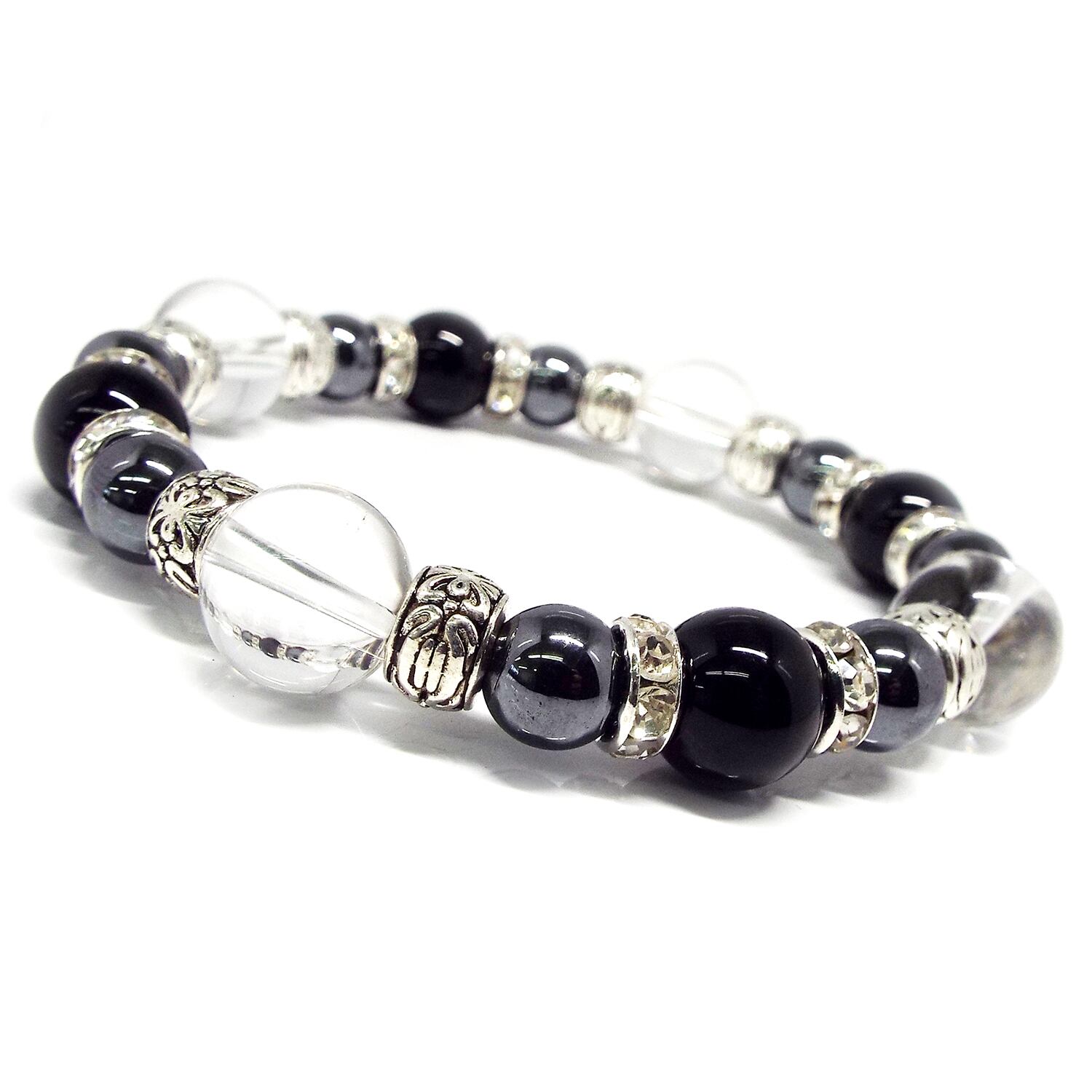 天然石 パワーストーン ブレスレット 水晶 ヘマタイト オニキス D5-16