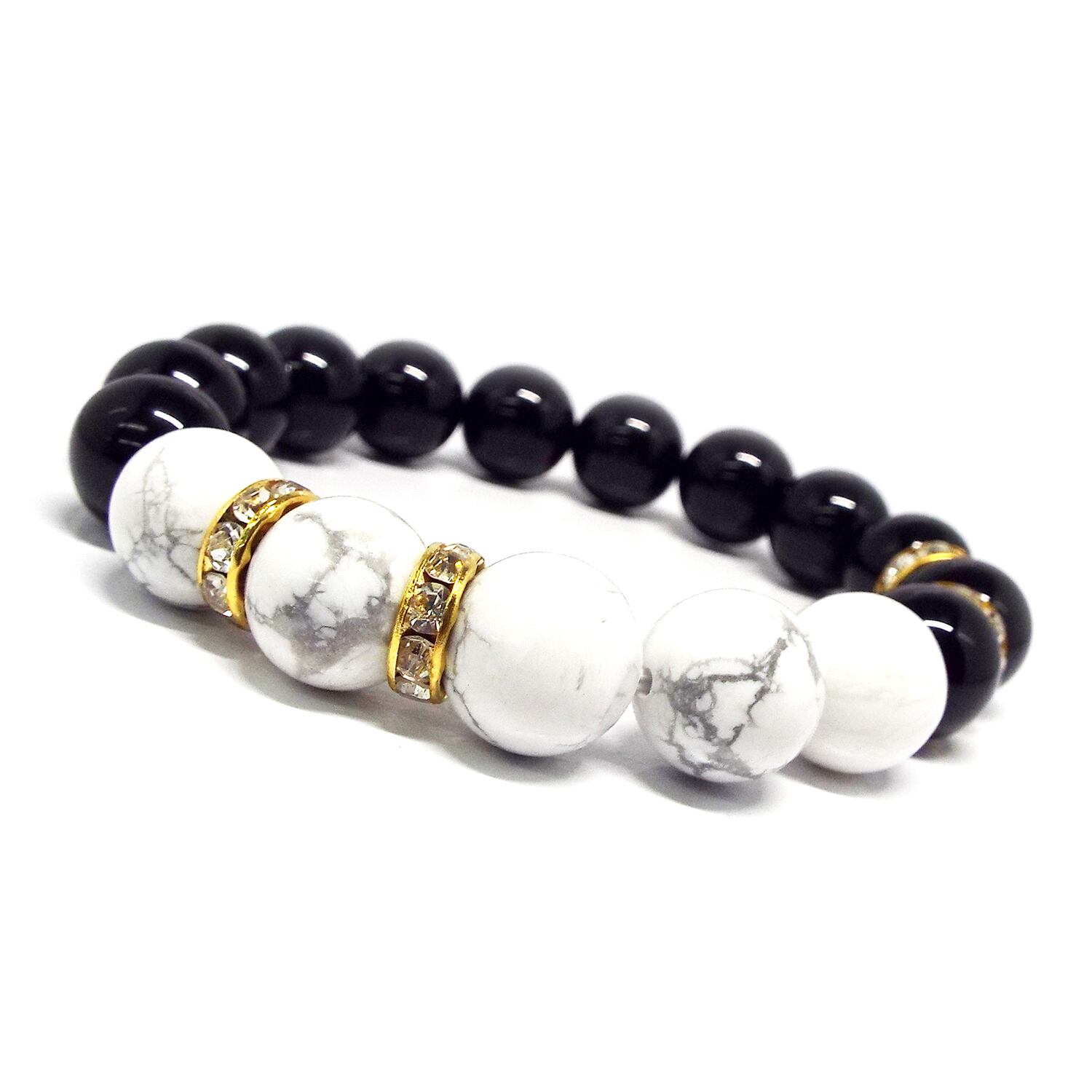 陰陽 大玉 天然石 パワーストーン ブレスレット オニキス ホワイトターコイズ D5-29
