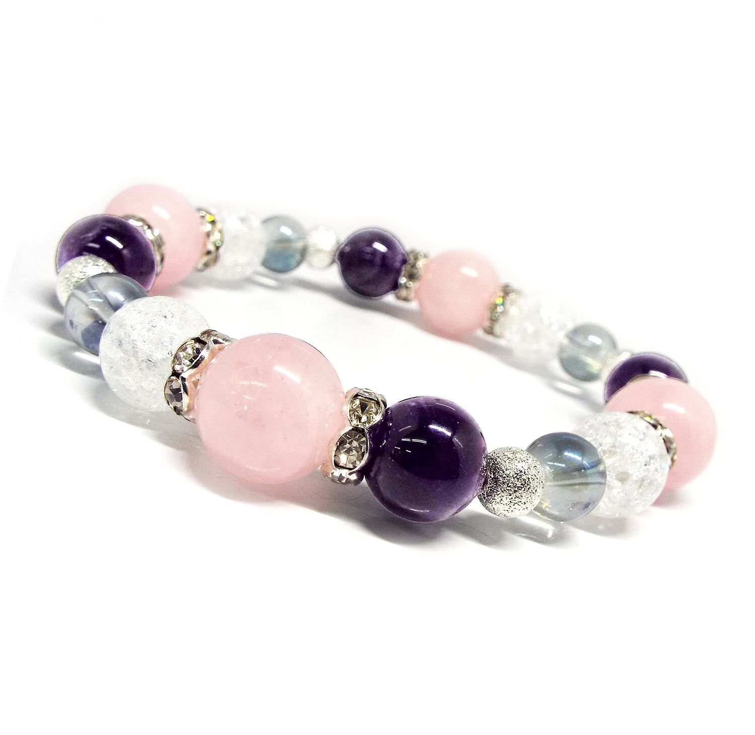天然石 パワーストーン ブレスレット ローズ クラック アメジスト オーラ D5-43