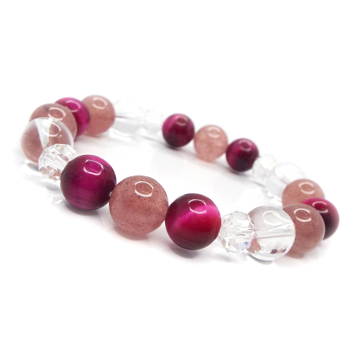 天然石 パワーストーン ブレスレット ストロベリークォーツ ピンクタイガーアイ 水晶 レディース アクセサリー DB0046