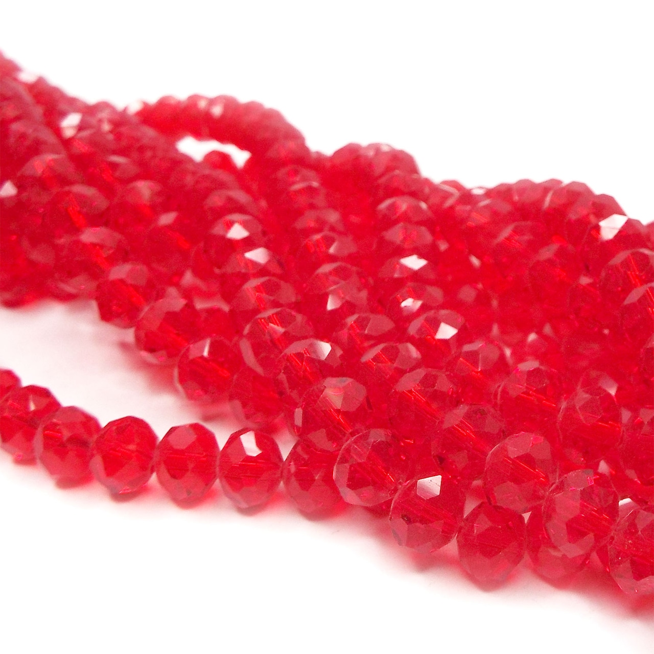 ガラスビーズ 連売り クリスタルガラス ビーズ レッド カット 約6×4mm 約85粒 RG1-26-6m