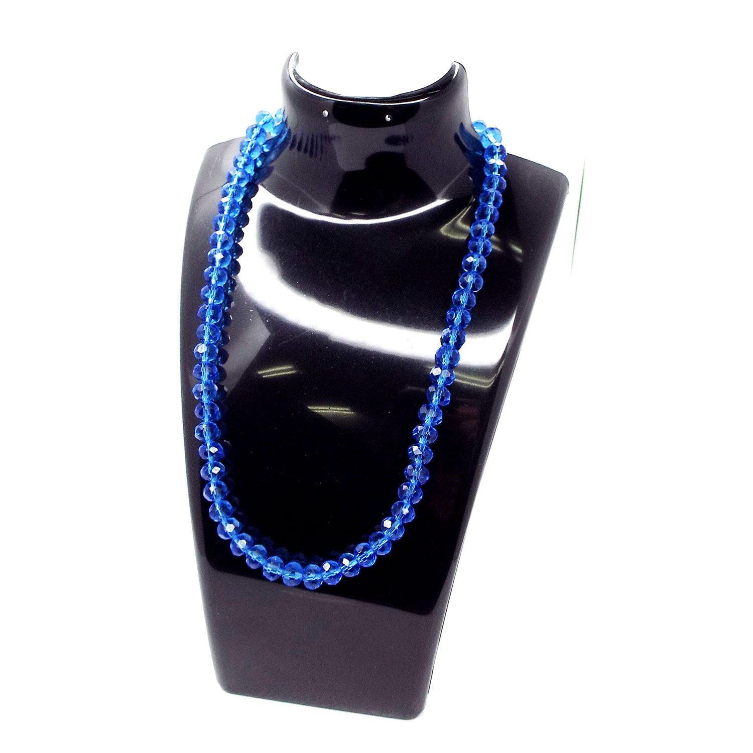 ガラスビーズ ネックレス サファイア 約8×6mm クリスタルガラス ボタンカット 天然石 パワーストーン NRG1-13-8m1p